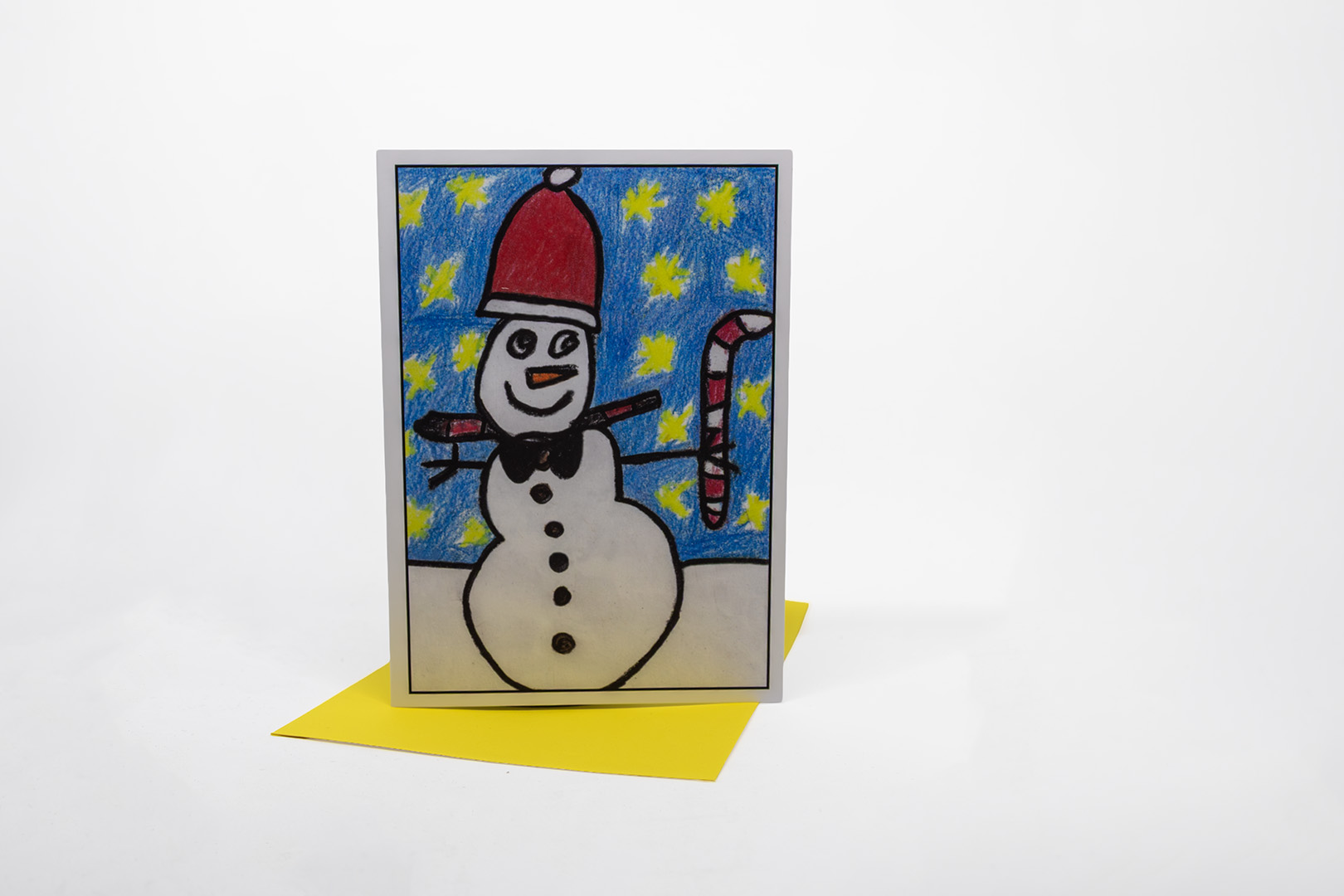 Weihnachtskarte „Schneemann mit Zuckerstange“